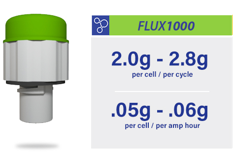The main mechanism used to save water in the FLUX Battery Recombination Cap is a catalyst made of one of several precious metals. Eventually over time, this material will become less active and catalyze less gas as they age. Say for example the catalyst inside the FLUX Recombination Battery Caps has 100M active sites that will convert hydrogen and oxygen back into water and this amount of catalyst has a finite amount of time that this recombination process will work. If we understand this variable to be consistent, we then over compensate by adding more catalyst than is necessary thus extending the useful life of the catalyst to insure that they will last as long as possible. This is based on an extrapolated projection because in the lab, we can only test for a given period of time before it is no longer efficient to do so. Eventually we would run out of time and time is one of the constraints that we can not change or we would never be able to release the vent into the market place.